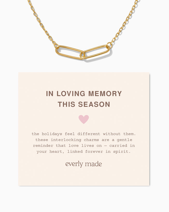 the holidays feel different without them. these interlocking charms are a gentle reminder that love lives on — carried in your heart, linked forever in spirit.