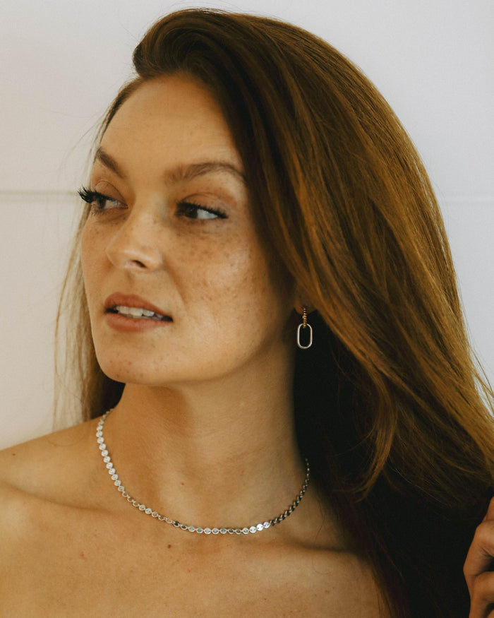 a staple to any ensemble, layer this stunning choker with a loose tee and distressed jeans for an effortless, boho look. ditch the layers as you transition to evening and wear with a dress as an elegant statement-- for this chain has what it takes to rise above any and every fancy neckline.
